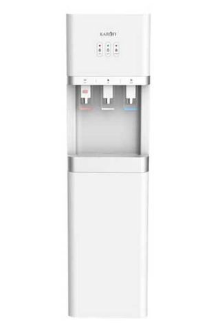 Điểm nổi bật đầu tiên của Karofi HC18 chính là thiết kế hút bình âm phía dưới. Người dùng chỉ cần mở khoang tủ, đặt bình nước vào và để máy tự động hút lên – thao tác nhanh, sạch và không tốn sức. Điều này đặc biệt hữu ích cho phụ nữ hoặc người lớn tuổi.