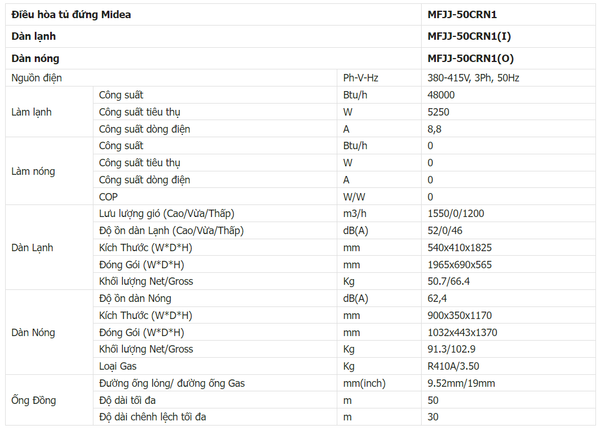 Cuối cùng, Điều Hòa Tủ Đứng Midea MFJJ2-50CRN1 không chỉ là một thiết bị làm mát mạnh mẽ mà còn là biểu tượng của sự tiện ích, hiệu quả và chăm sóc khách hàng. Với dòng sản phẩm này, bạn sẽ tận hưởng không khí trong lành và thoải mái trong mọi mùa và mọi điều kiện thời tiết. Hãy đặt niềm tin vào Midea để mang lại cho bạn một không gian sống và làm việc tốt đẹp hơn ngày hôm nay và trong tương lai.
